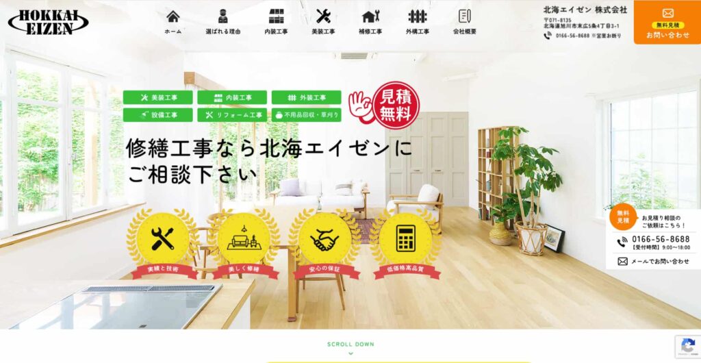 「北海エイゼン」は、北海道を拠点に建物の営繕・リフォーム・清掃・片付けまで幅広く対応する地域密着型の便利屋的サービス企業です。内装・外装・補修・美装工事など建築関連の施工を主力としており、壁紙・床材の張り替えや補修、外構工事、塗装・設備工事に至るまで自社一貫体制で実施し、余分な中間コストを抑えたリーズナブルな対応を行っています。