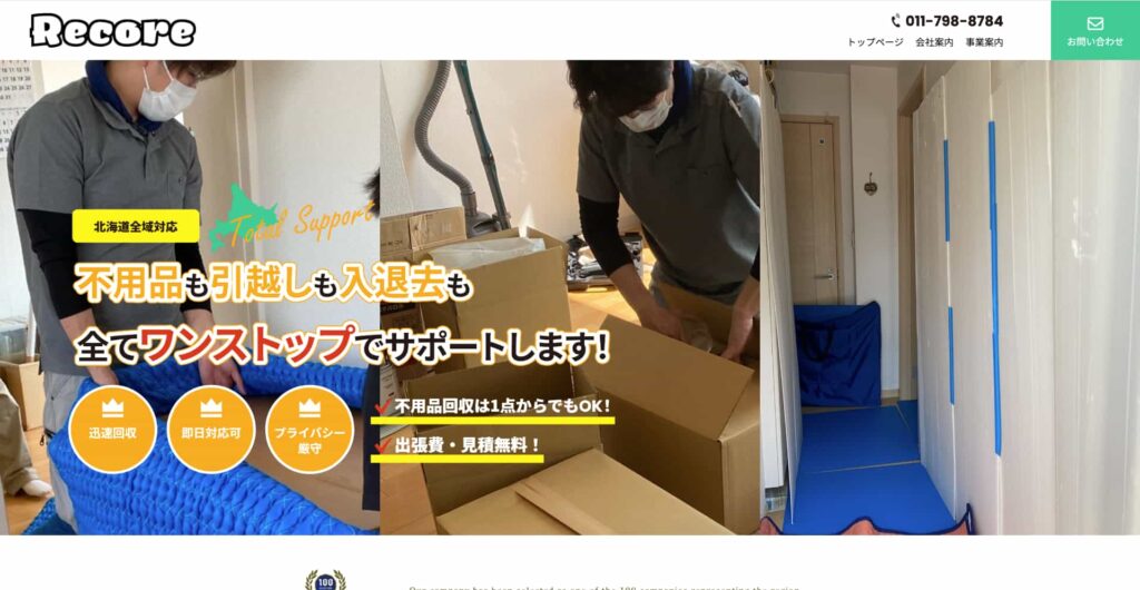 合同会社Recoreは、北海道札幌市を中心に、暮らしのお困りごとを幅広くサポートする地域密着型の便利屋サービスです。日常生活で発生する不用品の回収や買取はもちろん、引っ越し作業に伴う家具・家電の運搬や梱包、模様替えまで対応し、お客様の負担を軽減します。また、遺品整理・生前整理やゴミ屋敷の清掃、ハウスクリーニングなど、住まいに関わる整理整頓サービスも提供しています。