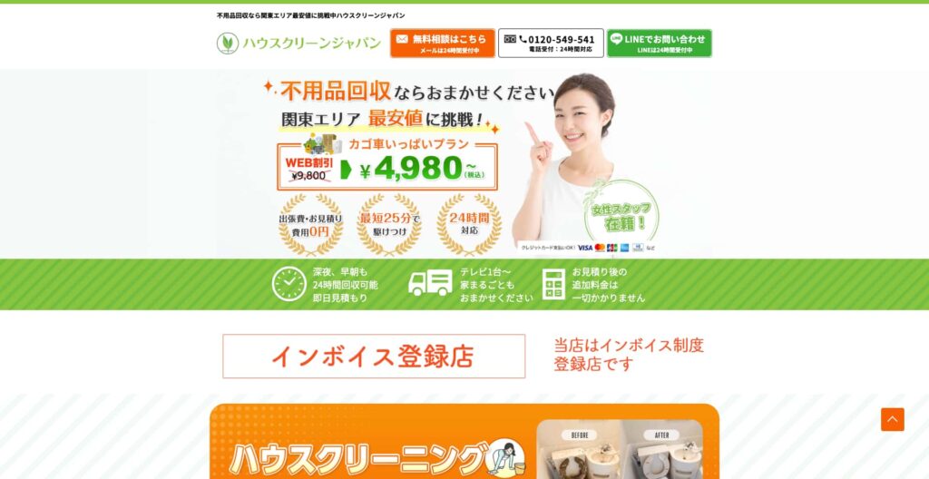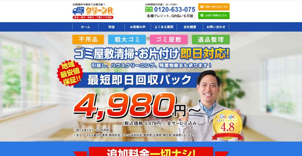 サービス内容 | 遺品整理、不用品回収、ゴミ屋敷清掃、引越し、ハウスクリーニングなど |