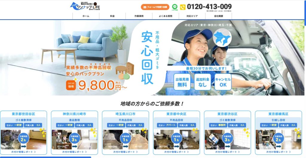 「ワンナップLIFE」は、遺品整理をはじめとした不用品回収・片付けサービスを専門とする信頼の業者です。年間15,000件以上の実績を誇り、東京・神奈川・埼玉など一都三県を中心に、即日対応も可能な体制を整えています。故人が残された品々をただ処分するだけでなく、ひとつひとつ丁寧に仕分けを行い、価値あるものは再利用・リユースを前提にした処理を心がけています。