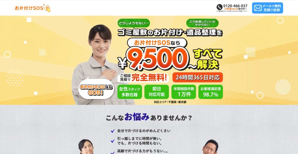 サービス内容 | 遺品整理、不用品回収、ゴミ屋敷清掃、片付けなど |