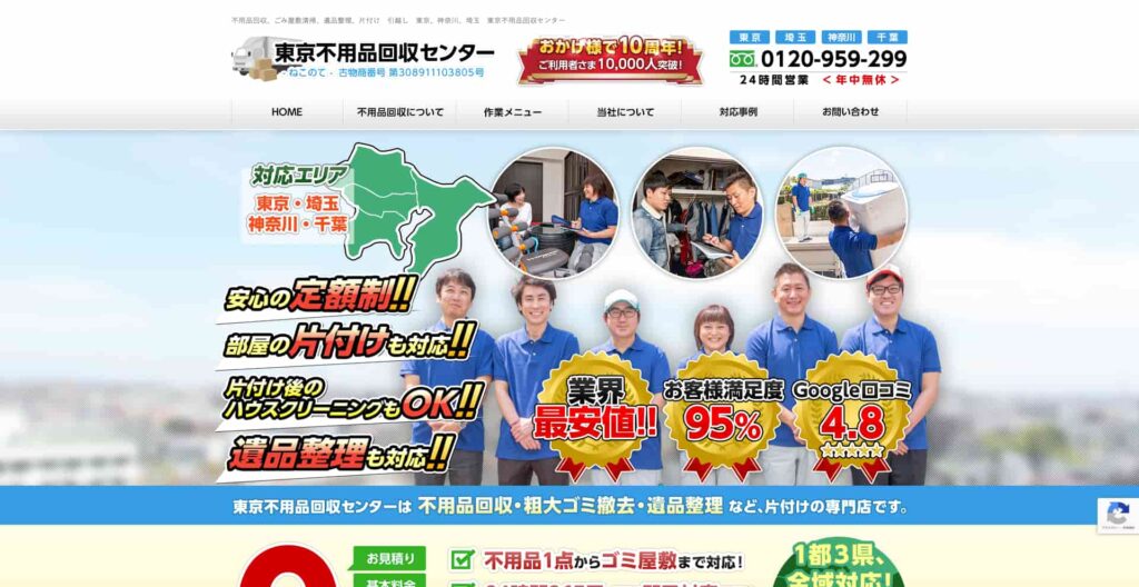 おすすめポイント | 業界最安値、即日対応可能、土日祝対応可能、完全自社スタッフによる一貫したサービス、遺品整理士在籍、遺品整理士認定協会認定の「優良事務所」 |