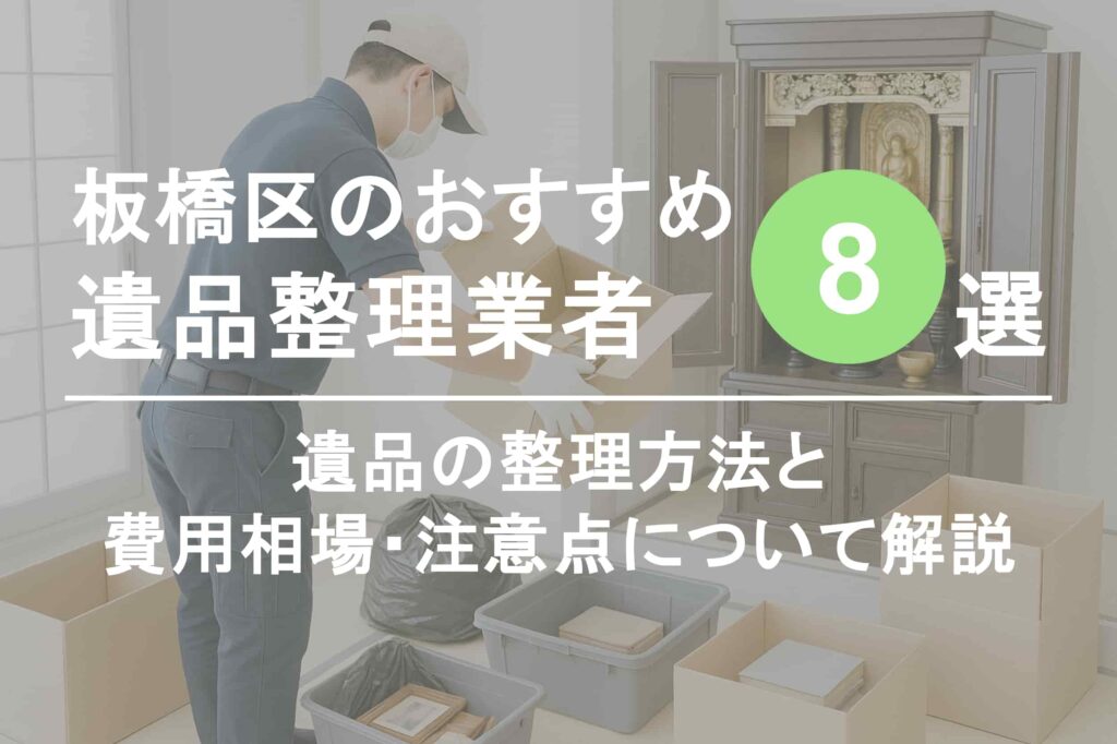 この記事では、板橋区でおすすめの遺品整理業者8選を厳選し、各社の特徴、料金、サービス内容、選び方のポイントを詳しく解説!さらに、自治体サービスとの違いや費用相場も整理し、あなたの事情に合った最適な整理方法と業者選びをサポートします。