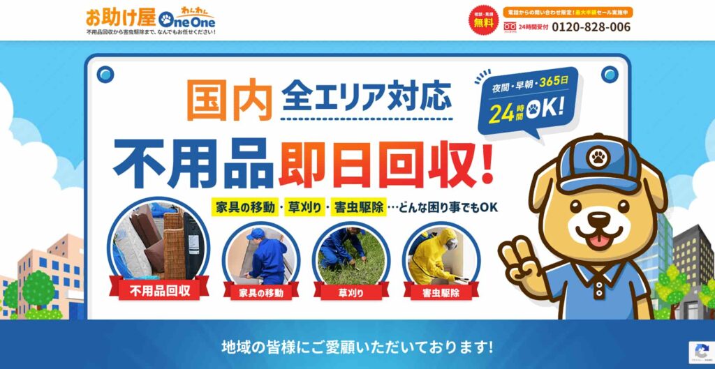 おすすめポイント業界最安値、24時間365日対応、即日対応可能、賠償責任保険加入済み、買取によるコスト削減可能