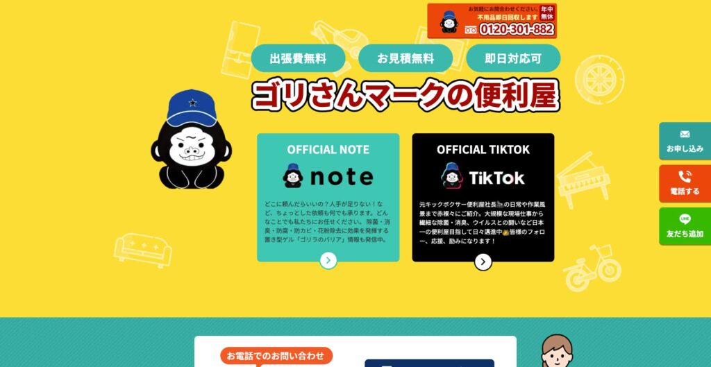 サービス内容遺品整理、不用品回収、ゴミ屋敷清掃、特殊清掃、不用品買取など