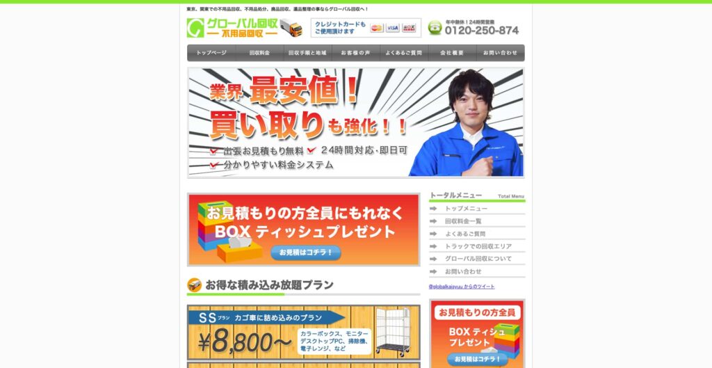 「グローバル回収」は、東京を拠点に関東全域で遺品整理・不用品回収をワンストップで手がける総合サービス企業です。遺品整理士認定協会に認可されたスタッフが在籍しており、故人の遺品をただ処分するのではなく、思いを大切にしながら誠実に対応します。サービスは即日対応や少量からの依頼にも柔軟に応じ、家具・家電といった大型品の搬出、思い出の品の仕分け、貴重品の探索まで幅広くカバー。