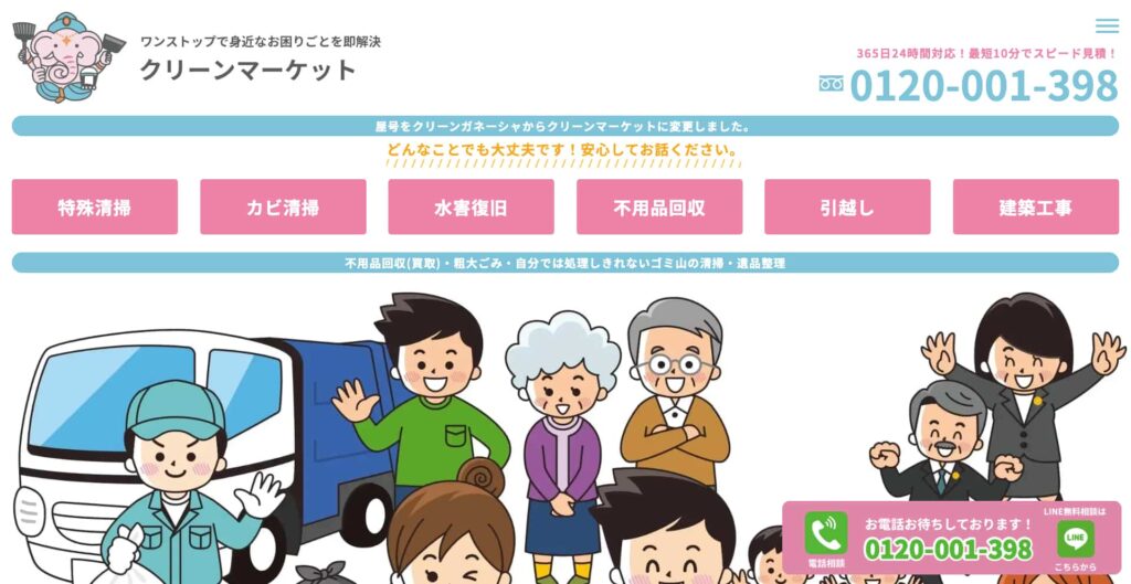 サービス内容遺品整理、不用品回収、ゴミ屋敷片付け、不用品買取など
