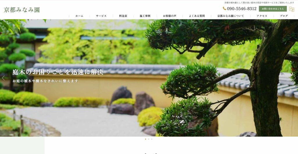 「京都みなみ園」は、造園業界20年のベテランが率いる庭木の剪定を得意とする、住まいと調和する美しい緑空間づくりを手がける造園のプロフェッショナル集団です。木々の持つ本来の姿と空気の流れを大切にしながら、風通し・採光・樹勢のバランスを見極めた剪定を行います。