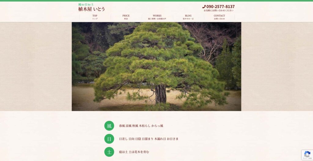 おすすめポイント | 一級造園技能士在籍、地域密着型、土日祝対応、お庭のトータルケア可能 |