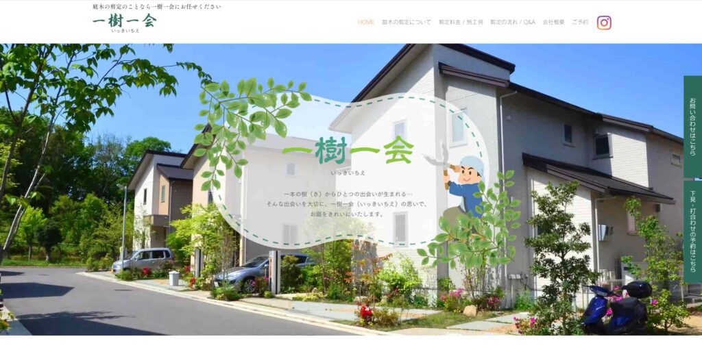 愛知県名古屋市を拠点とする「一樹一会」は、庭木の剪定をはじめ、伐採、草刈り、防草シート施工、竹細工、雨どい掃除、ハチ駆除など、庭まわりの幅広い造園サービスを手がけています。一本の樹木との出会いを大切に、お客さまのご要望に対し誠心誠意向き合う姿勢を理念としています。