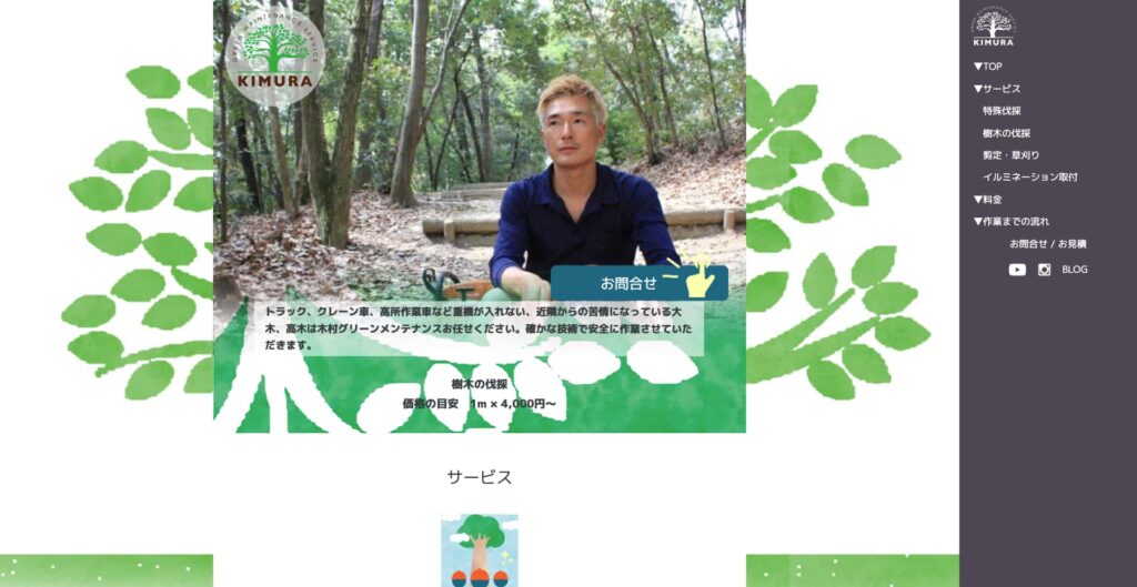 サービス内容 | 剪定、伐採、草刈り、芝刈り、草取り、防草対策、消毒、植栽、外構工事など |