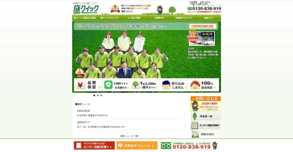 「庭クイック」は、東京・神奈川・埼玉・千葉を対象に、造園・お庭の手入れサービスを展開する専門業者です。特に、剪定を軸とした取り組みに強みを持ち、桜や梅、松といった樹木から生垣・植込みまで、幅広な植物の剪定に対応しています。剪定では、単なる枝・葉の切除にとどまらず、木の健康や見た目の美しさを重視した施術を心がけています。