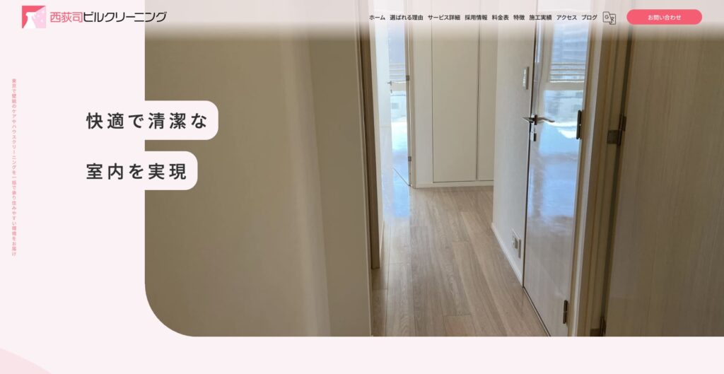 「西荻司ビルクリーニング」は、清掃専門会社で、エアコンクリーニングを中心に、壁紙の張り替えや水回りの清掃など、幅広いハウスクリーニングサービスを提供しています。エアコンクリーニングは、内部の分解洗浄を行うことで、カビやホコリを徹底的に除去し、快適な室内環境を実現します。また、壁紙のケアや水回りの清掃など、オールインワンのクリーニングサービスを提供しており、短期間で高品質な仕上がりを実現しています。