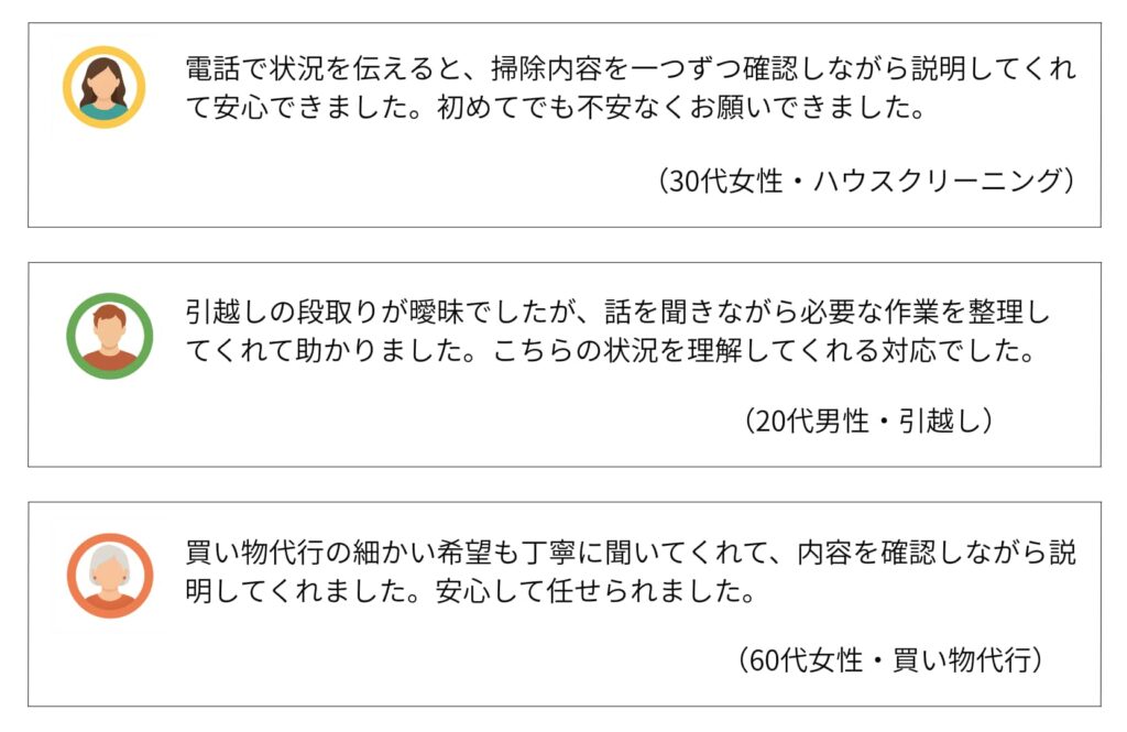 一言で言うと、ベンリーは“安さよりも安心感と対応の安定性を重視した便利屋”です。だから口コミでも、初めての人からの評判が比較的安定しています。