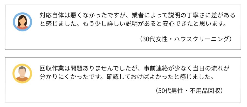 ただし注意したいのは、「作業内容の認識がずれていた」「見積もりに含まれる範囲を勘違いしていた」といった声です。これは後出し請求というより、利用者と業者のすり合わせ不足から生じるケースが目立ちます。
